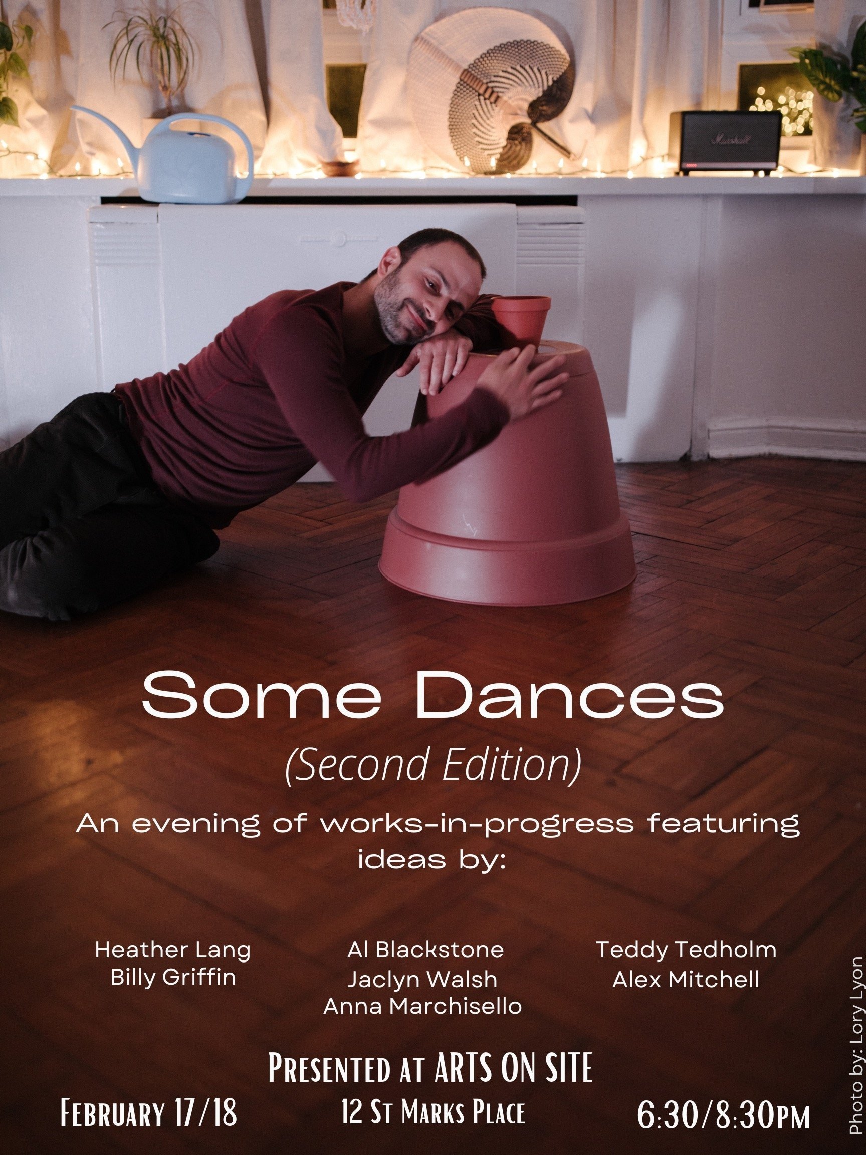 The program features dance artists James Barret, Rebecca Corrigan, Emma Lalor, Gabriella Sibeko, Ian Spring, Stephanie Terasaki, and Maddy Wright.